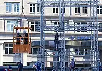 | とび職。建物や大きな構造物を建設したり修理したりするときに、人々や材料を支える一時的な足場を作る職人の作業場または事務所。 |