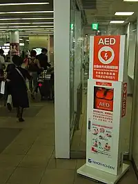 自動体外式除細動器(AED)は生命にかかわる不整脈の診断を自動的に行い、除細動を実施する救急機器です。自動体外式除細動器は公共の場所に設置されることが増えてきています。ドイツなどの一部の国では AED を使うのに救命講習を受けた人が望ましいされていますが、日本では誰もが使うことができるようになっています。