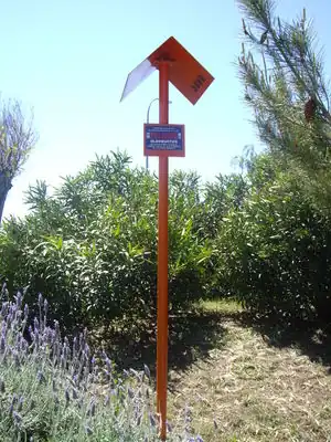 Marker indicating the path of an underground pipeline, mounted on poles, walls, pedestals etc. With different covers and colours. | |