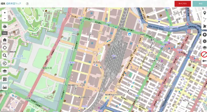 - 地図上にポイントを追加するには、右サイド3番目のボタンをクリックして、目的の位置にポイントを置きます。