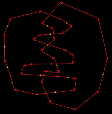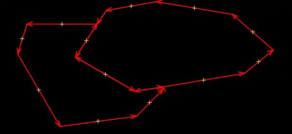 An special case is then contours have more than one overlapped section (exists more than two intersection points). In these case plugin action must redraw the non-priority contour border to the priority contour border in overlapped section (between even and odd intersection points). In overlapped section the priority contour border is redrawn to the non-priority contour border (between odd and even intersection points).