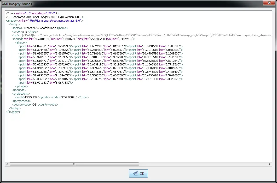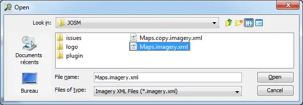 - Import XML files describing imagery entries, compliant with the XML Schema located at http://josm.openstreetmap.de/maps-1.0, to a JOSM data layer.