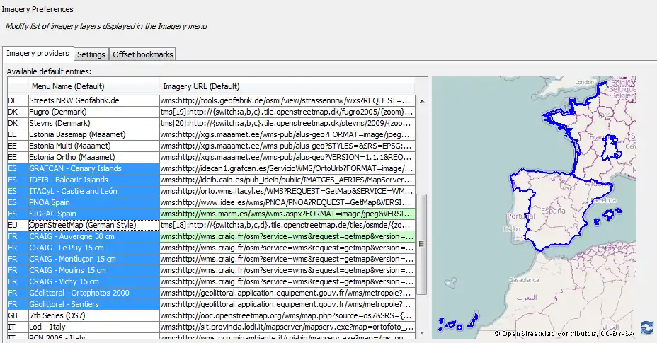 These boundaries are then displayed in the Imagery Preferences dialog: