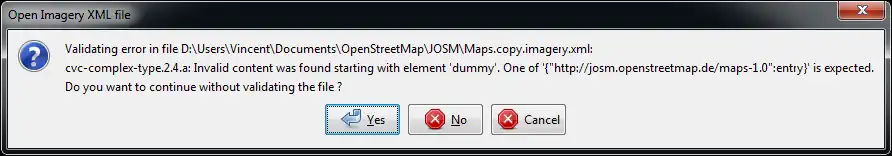 Note that the selected XML file is first validated against the XSD. However, the plugin allows you to bypass this check if you desperately need to open an invalid file (at your own risks):