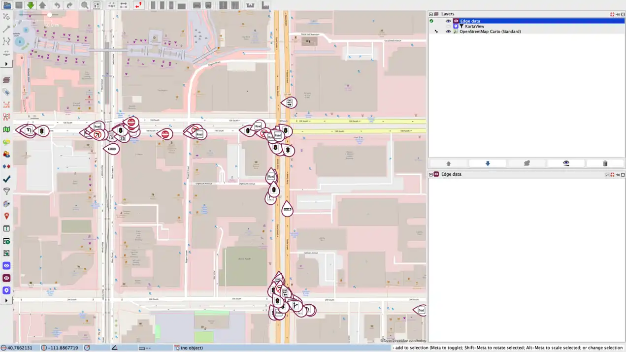 The Edge data panel displays the currently selected edge detection metadata.