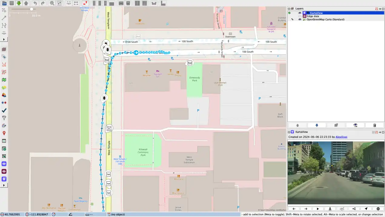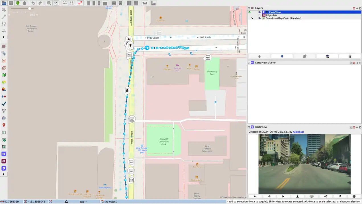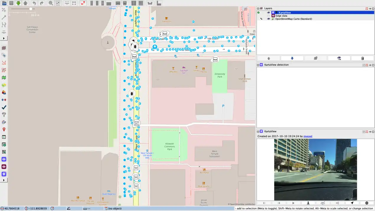 The KartaView plugin is a JOSM plugin that displays up to date street view images collected by the KartaView platform. Street view images are also available via the KartaView web and mobile applications. Having an extra source of free and open imagery ease the process of remote mapping and allows the users to reflect the reality also in the map. Street view images are helpful for editing map features that are not visible on satellite imagery like traffic signs, house numbers, bus stops, points of interests.