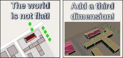 Watch the world in three dimensions. This is a plugin for JOSM, allowing to watch edited data in 3D. It was created by User:Kendzi.