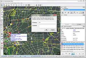 The MapDust plugin shows the MapDust bug reports on the map. You can create, close, invalidate, re-open and comment bug reports by using this plugin. MapDust was established to provide a user friendly and intuitive interface to collect problems, missing entities or attributes that relate to OpenStreetMap. The intention is to enable all people to improve the OpenStreetMap database regardless of their technical skills.