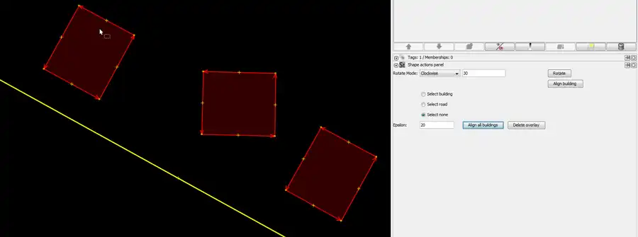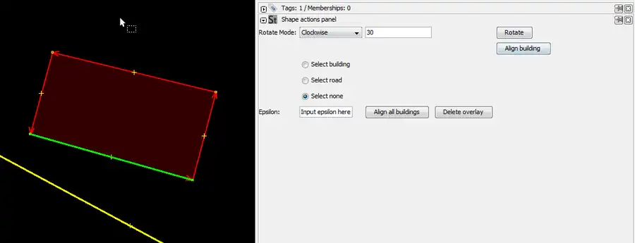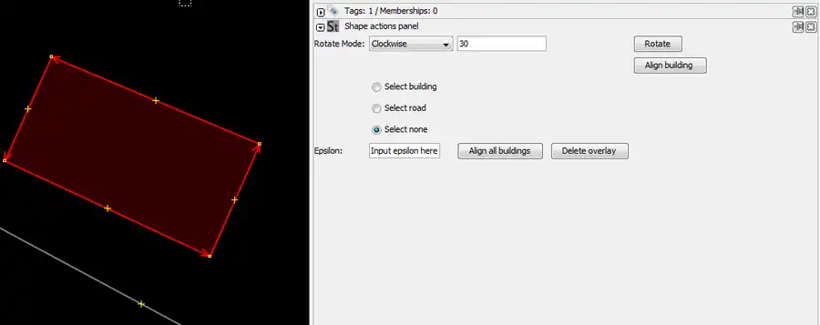 - Also, it allows the user to align a building with a road, by selecting the desired segment on the road, and a wall of the building.