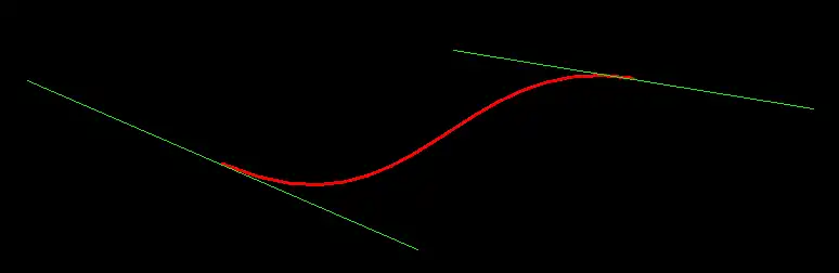 Green lines are tangents with control points at ends, red line is the resulting spline: