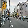 | highway | tertiary | For 2 lane roads (1 lane each way and drawn a center line, or 2 lanes one way) within a shi (city), a machi (town) or a mura (village). This should not be a major (motorway, motorway_link, trunk, trunk_link, primary, primary_link, secondary, or secondary_link) road or a residential road. | ![]() |