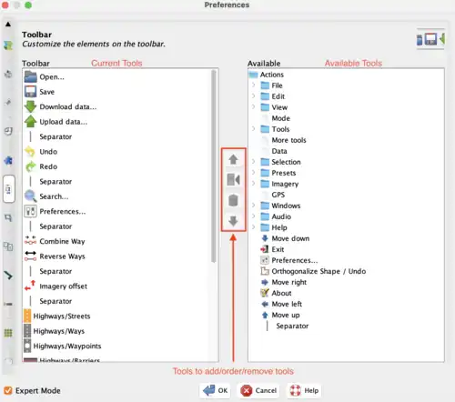 Expert mode enables us to perform more than the basic functions of JOSM. This is one of the first things we do when setting up JOSM for the first time.