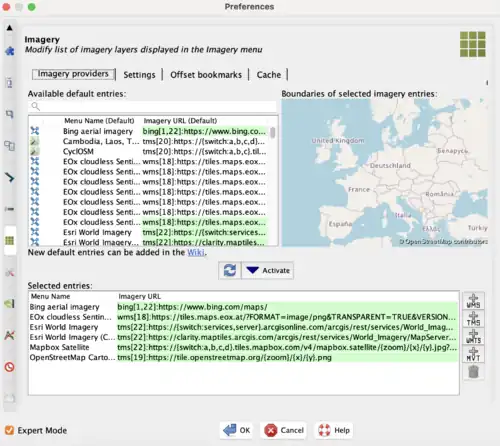 Note: You may have to restart JOSM in order to use the new imagery layer.