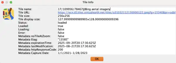 - This will bring up a popup with various information about the imagery source including when it was captured(if available).