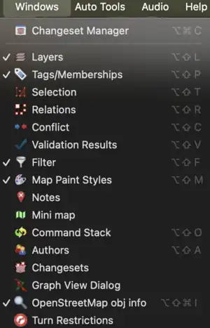 | Layers | Tags/Memberships | Relations | Command Stack | ||||