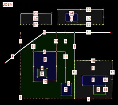 - The other closed ways should NOT have tags that describe the area. Tags can be added to define the line features.