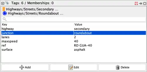 The junction=roundabout tag is used to tag roundabouts. These are circular, self-intersecting junctions where traffic entering the roundabout yields to traffic within the roundabout. Since these junctions have oneway traffic, the tag oneway=yes is implied. For more information, see the Kaart: Road Geometry Guide and the Kaart: Signs pages.