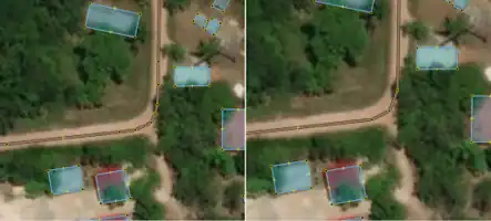 | Shadows obstructing view of the road. | Clouds obstructing imagery of roads. | Tree cover obstructing view of roads. |