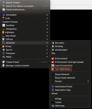 To use the turn restriction preset: