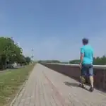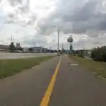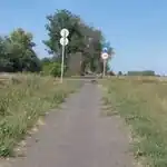 Közepes minőségű, beton lapokkal burkolt kerékpárút, melyen a Vízművek járművei közlekedhetnek (árvízvédelmi töltés)