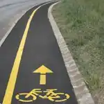 Közepes minőségű, aszfaltos, 2 sávos, kivilágított kerékpárút (belterületen)