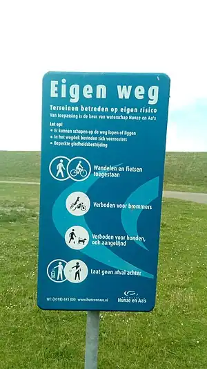 Since access signs are not part of the formal traffic regulations, they can have a wide variety in both form and contents.