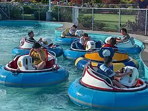 | attraction | bumper_boat | Amusement activity involving riding inner tubes in a large pool, often equipped with spray guns. |
