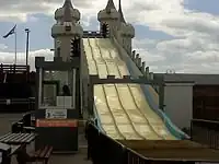 | attraction | slide | Amusement park slide or giant slide is larger version of the playground slide with multiple parallel slideways.
