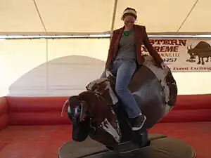| attraction | mechanical_bull | A mechanical bull or bucking machine that simulates riding a bucking animal like a bull or a horse as known from the sport of Rodeo |