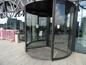 Automatic doors are doors that are button operated, by user detection (Camera, Infrared sensor, floor pressure detection) or that are turning all the time.