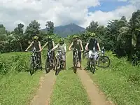 At a bicycle tour people ride a bicycle, are taken for a short trip and returned to their start point.