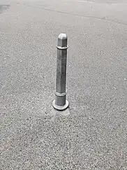 A bollard which can be pulled out of the ground and removed from its location to allow access, often only by the person with the key. Normally in place, and not generally passable. |