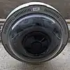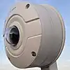 A characteristic dome camera, with usually a dark 'glass' dome under which a freely moving camera is situated. Also known as a PTZ (pan/tilt/zoom). |