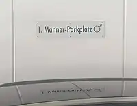 Men-only parking space in Triberg, Germany. Marked by a sign.
