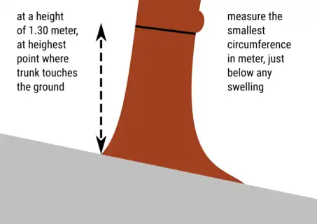 | Circumference (in metres) of a tree's trunk at the height of 1.3 metre above ground. |