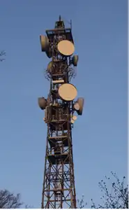 Microwave transmission uses usually parabolic antennas which are located on masts/towers on both ends of radio link.