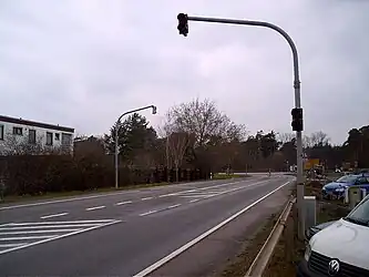 | A crossing for pedestrians and cyclists with traffic lights (button-operated or not).