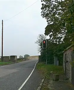 May be found to give priority to public transport, emergency or special vehicles, when they enter/exit an access service highway (e.g. in first image). May be found used to alternate the direction of traffic on narrow highways (e.g. in second image before entering a bridge). But the crossing with this traffic signal is not suitable for safe pedestrian crossing. |