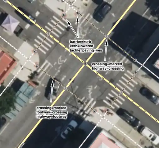 way. Alternatively, on the crossing node, kerb:left=*andkerb:right=*can be used. - For routing, it is important that