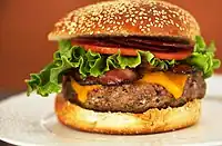 | burger | A meal made from a patty of meat placed inside a bun | ![]() | |