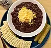 | chili | A dish made from chili peppers, meat, tomatoes, and beans, originating from Mexico or Texas | ![]() | |