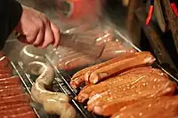 | sausage | A piece of ground meat stuffed into a cylindrical casing | ![]() | |