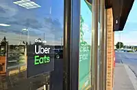 Many shops, grocers, restaurants, bars, and other service oriented fields offer delivery via third-party carriers. These carriers are often (but not always) unaffiliated with the location from which they deliver. Often, there are stickers on or near the entrance to the establishment and/or a dedicated pickup counter for these carriers that would assist in telling contributors which services the location uses. Alternatively, one may go to the service website and seek out local verifiable places that are listed as available for delivery.