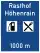 Symbols for the parking, fuel, restaurant and hotel are present. |