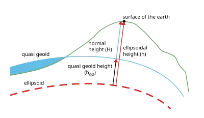 | Ellipsoid height of a point in WGS84 (h in the image). |