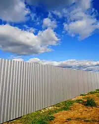 Light steel sheets with linear corrugated pattern (wavy, trapezoidal, etc.). Also known in Australia as Colorbond fencing. |