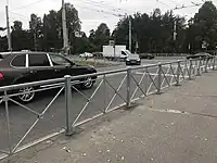 Typical metallic pedestrian fence PO-1 "Krest". Used in cities of Russia for fencing around crossings. Widely used in France on sidewalks and known as "Croix de Saint-André" (St. Andrew's Cross or X-shaped cross) |