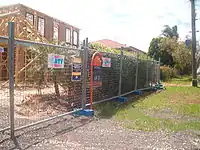 A net fence is a flexible type of woven fence usually made from plastics and typically used to prevent balls or equipment from leaving designated areas (e.g. sports fields), protecting spectators, players and surrounding property. | |