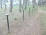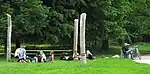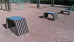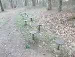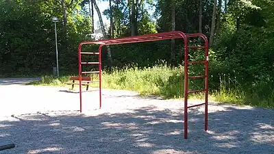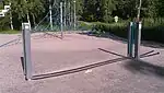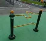 Stretching | A fitness station for stretching. Usually one or more horizontal bars for leg stretching. |