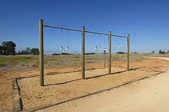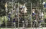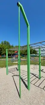 Obstacle | A series of short horizontal bars mounted side by side and high enough to hang on. Also known as monkey bars. |